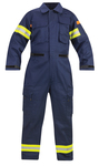 • 3” FR triple trim across back, around upper arms and leg cuffsHook and loop adjustable throat latchLeft chest radio pocket with utility strapRight chest oversized utility pocketMic clip above radio pocketLined and reinforced padded elbows and forearms Hook and loop adjustable cuff closuresTwo rear patch pockets with hook and loop flap closuresHeavy duty, two-way aramid zipper front closure with hook and loop storm flap (fly area - no hook and loop for ease of access)Hook and loop adjustable take-up straps at waistPadded knees and shinsScissor pocket with straps over semi-bellowed cargo pockets on both thighs12” leg zipper with hook and loop adjustable straps at ankle Imported